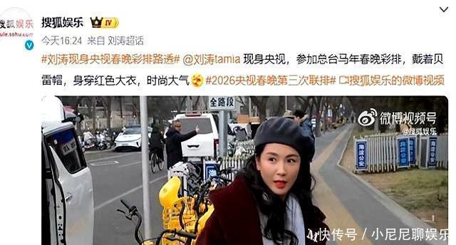 事情的起因其实特别简单:有媒体拍到刘涛参加2026年央视春晚第二场彩排,红大衣配贝雷帽,按理说打扮得挺有年味儿。
